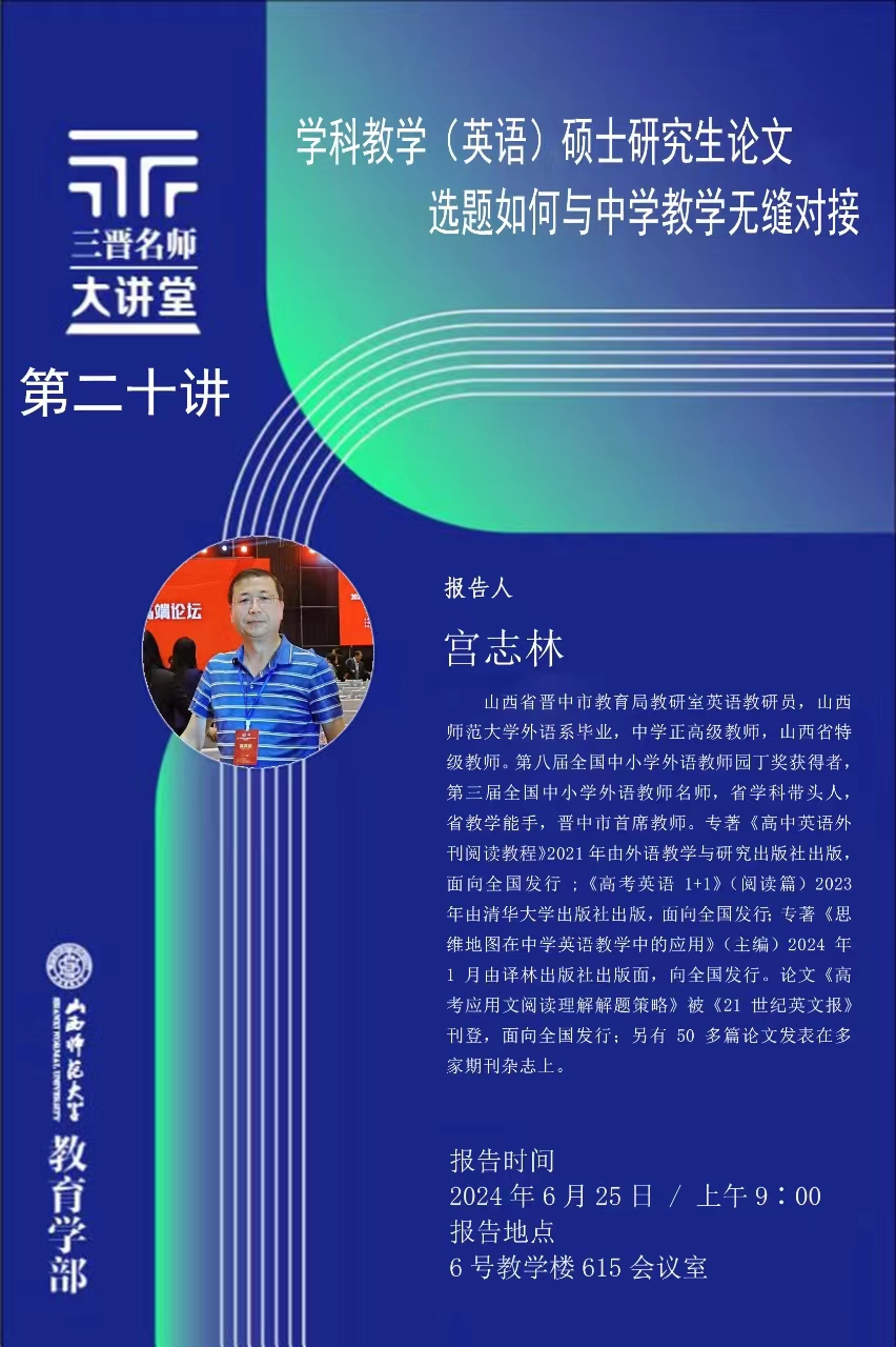【预告】晋中市教育局宫志林研究员应教师教育学院邀请作学术报告