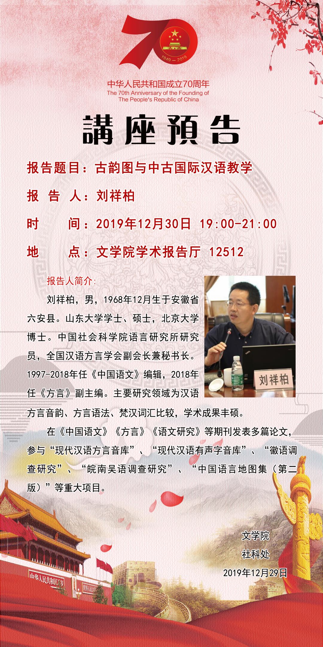 【预告】中国社科院研究员刘祥柏应文学院邀请来威尼斯官网作学术报告