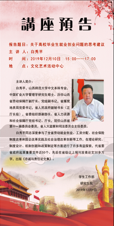 【预告】山西省人大监察和司法委员会白秀平主任应邀来威尼斯官网作学术报告