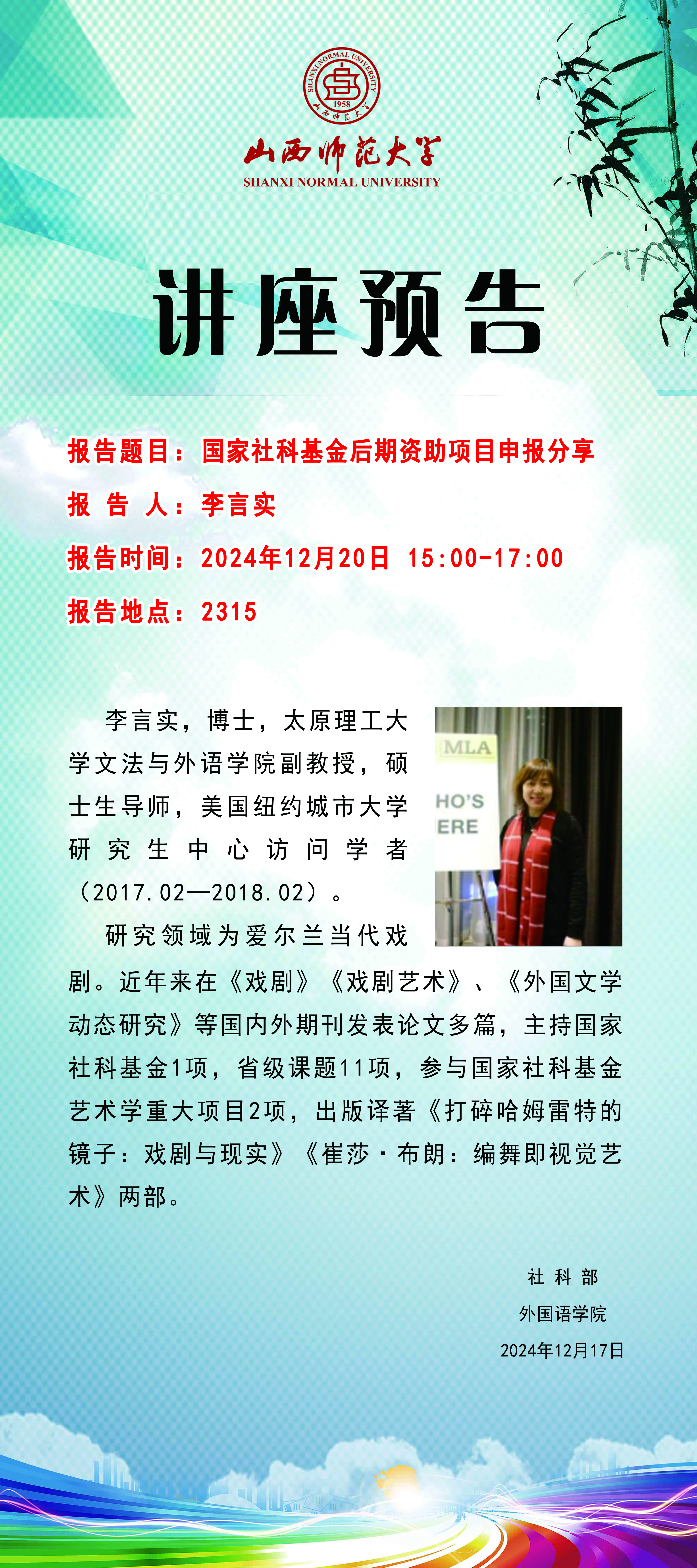 【预告】太原理工大学李言实副教授应外国语学院邀请作学术报告