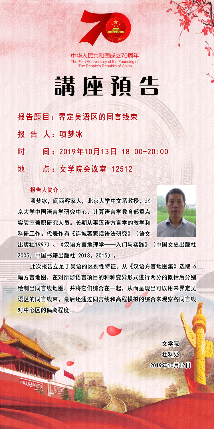 【预告】 北京大学项梦冰教授应文学院邀请来威尼斯官网作学术报告