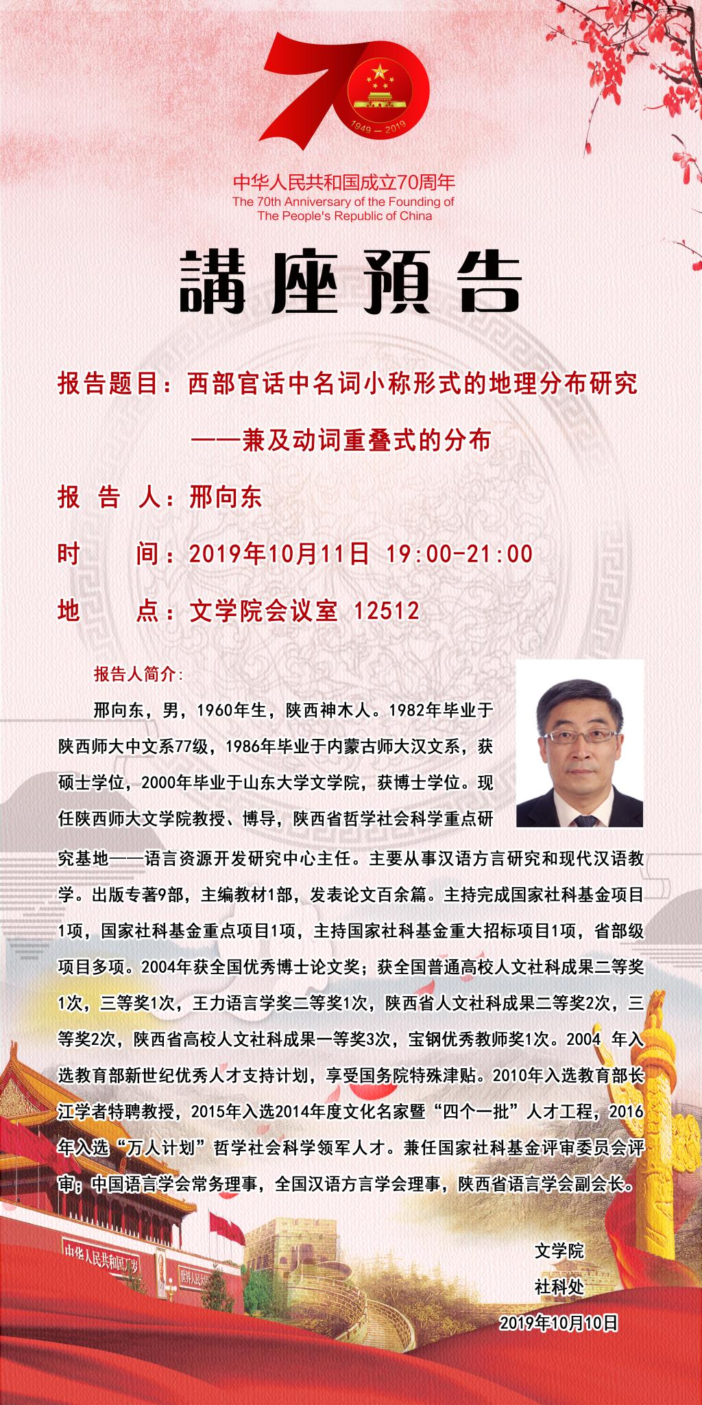 【预告】 陕西师范大学邢向东教授应文学院邀请来威尼斯官网作学术报告