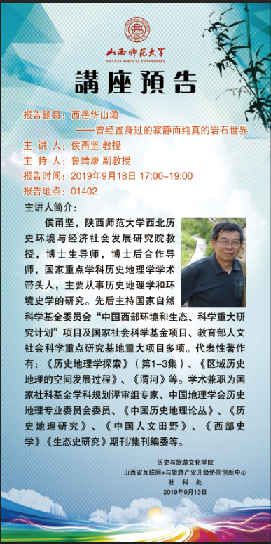 【预告】 陕西师范大学侯甬坚教授应历史与旅游文化学院邀请来威尼斯官网作学术报告