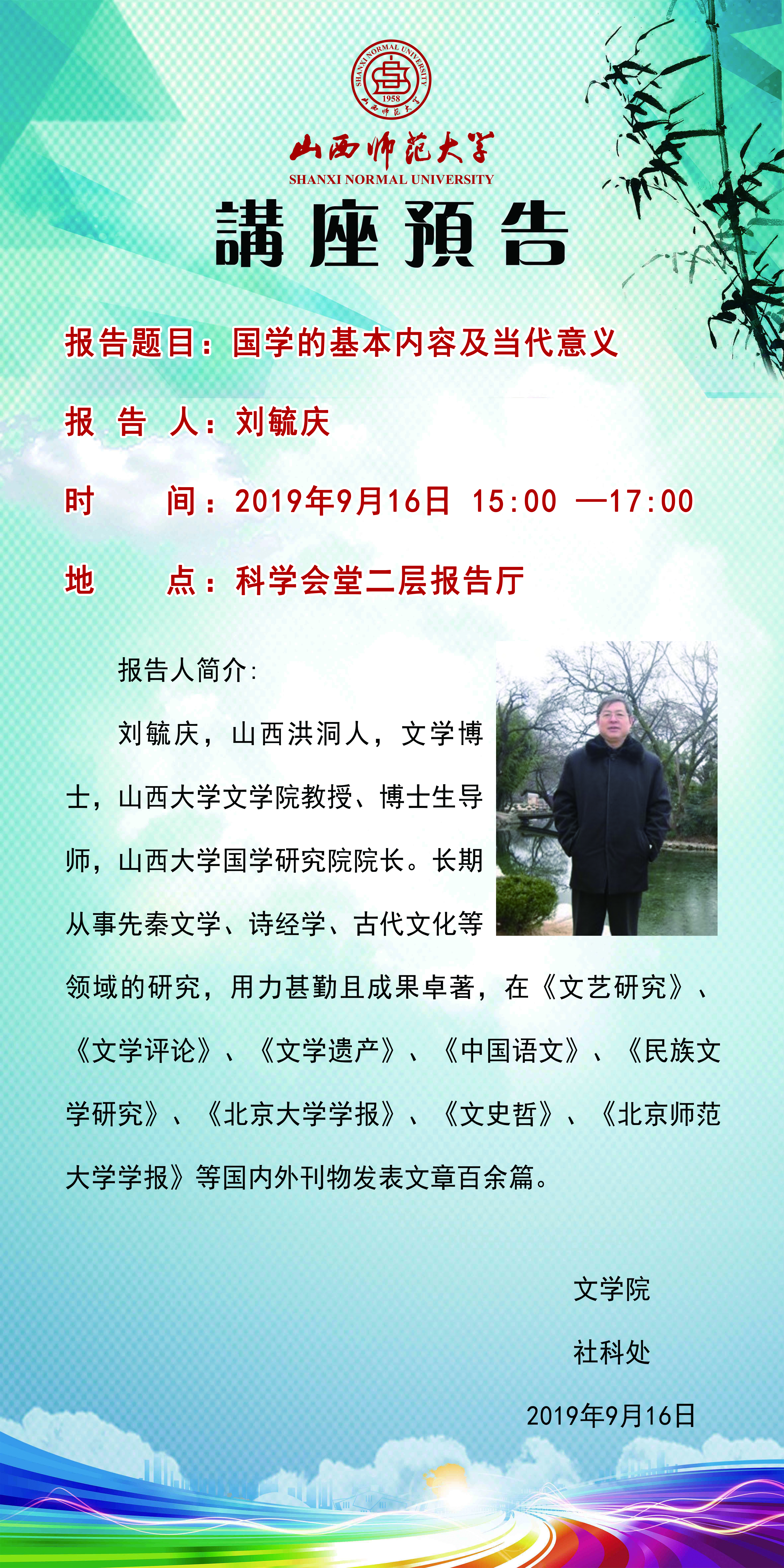 【预告】山西大学刘毓庆教授应文学院邀请来威尼斯官网作学术报告