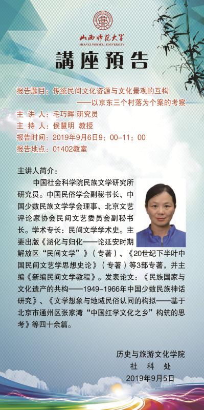 【预告】 中国社会科学院毛巧晖研究员应历史与旅游文化学院邀请来威尼斯官网作学术报告