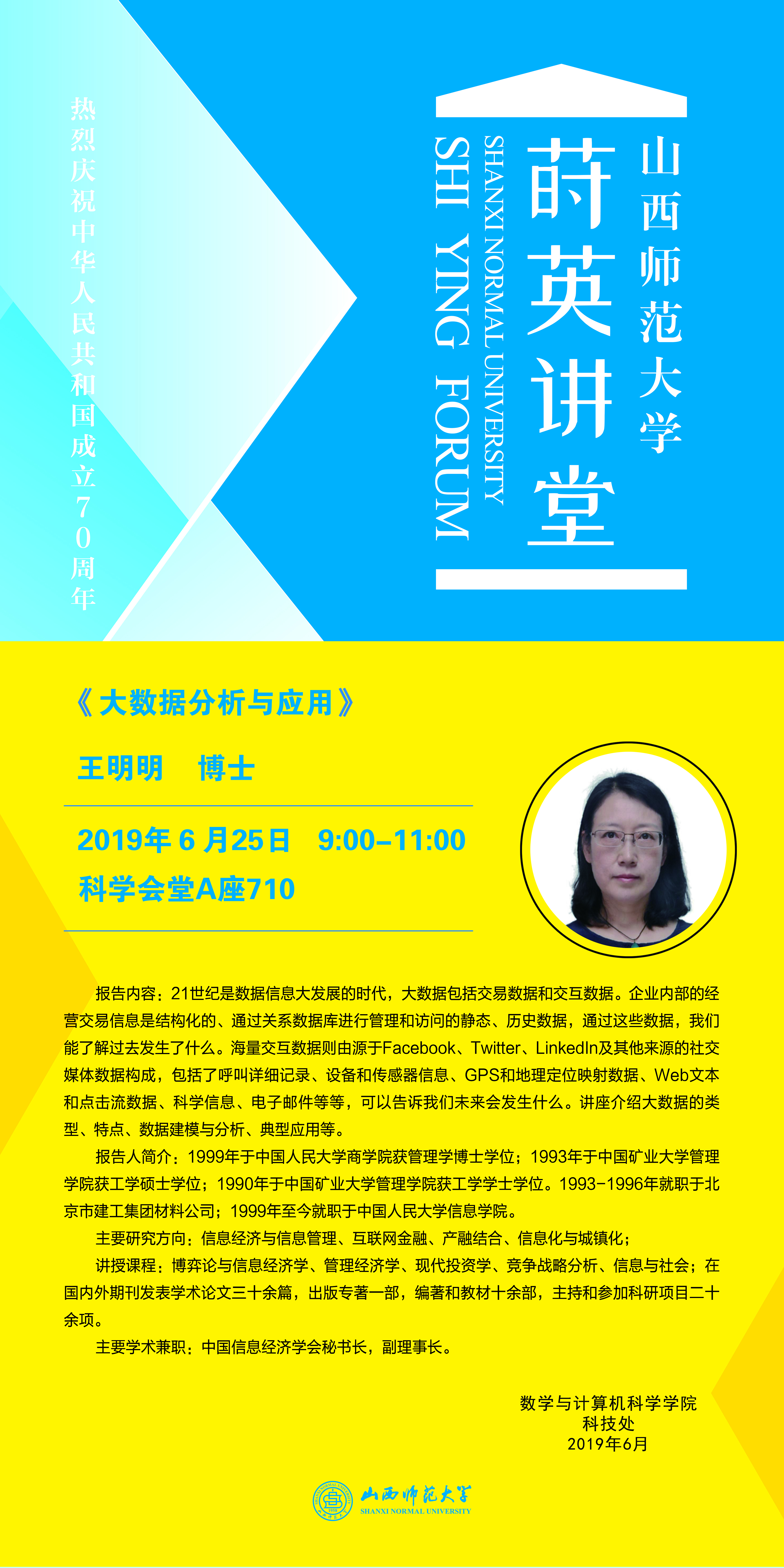 【预告】中国人民大学信息学院王明明副教授应邀来威尼斯官网做学术报告