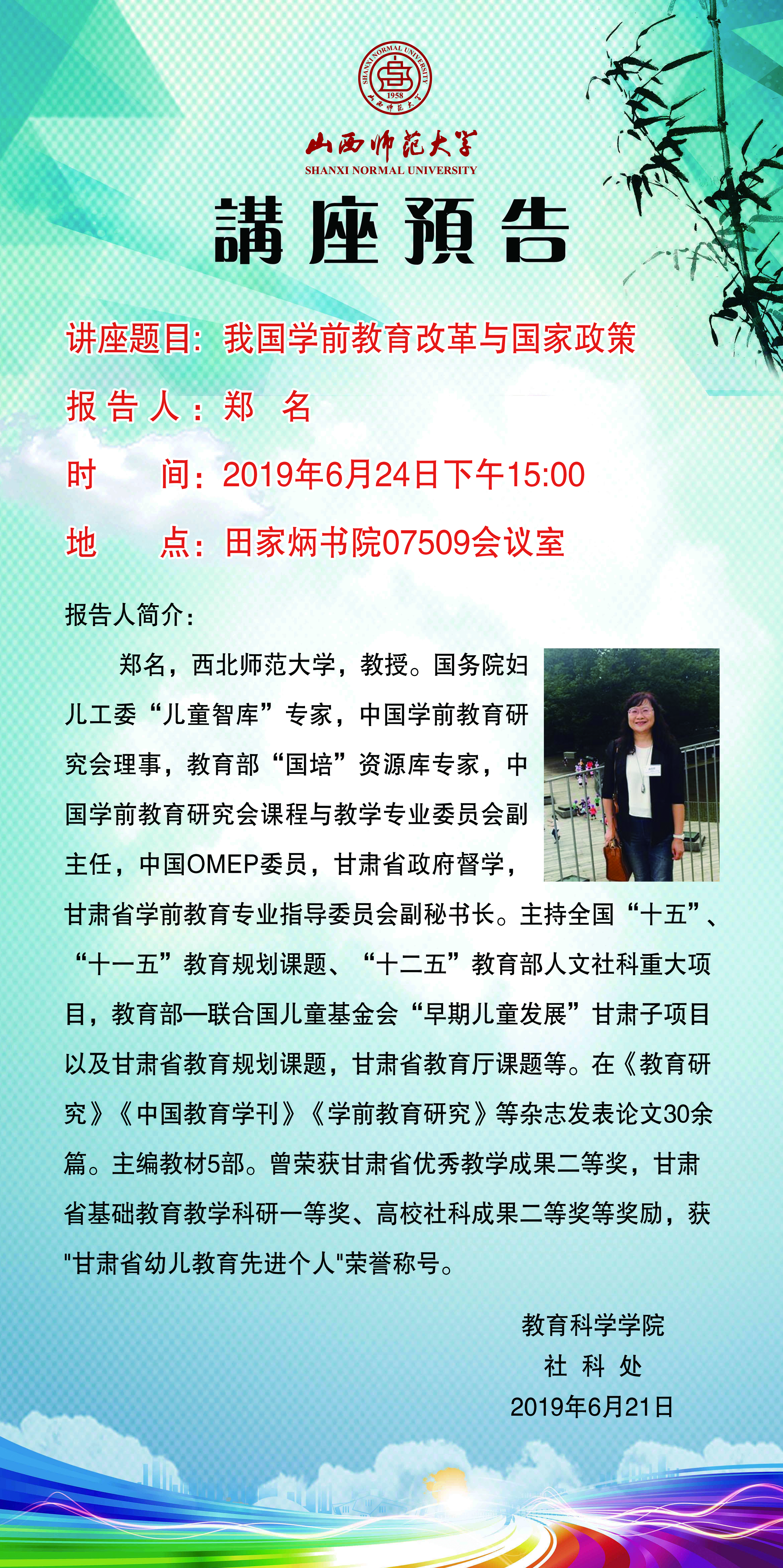 【预告】 西北师范大学郑名教授应教育科学学院邀请来威尼斯官网作学术报告