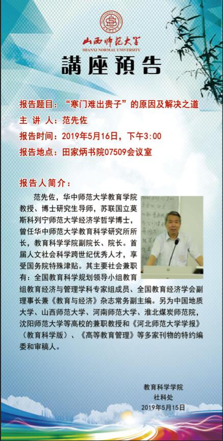 【预告】 华中师范大学范先佐教授应教育科学学院邀请来威尼斯官网作学术报告