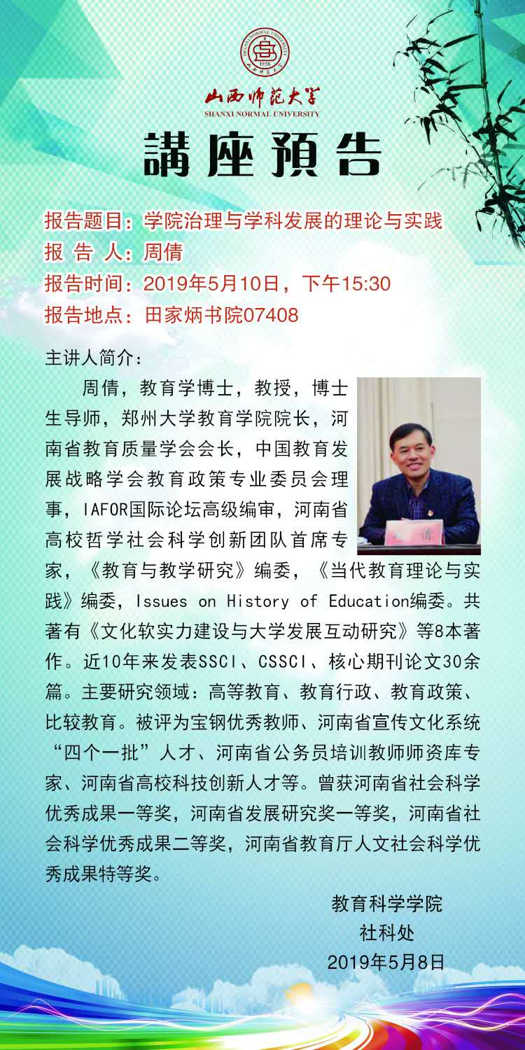 【预告】 郑州大学周倩教授应教育科学学院邀请来威尼斯官网作学术报告