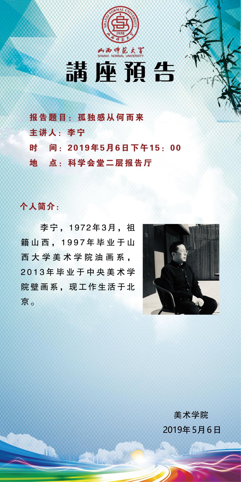 【预告】 当代艺术家李宁应美术学院邀请来威尼斯官网作学术报告