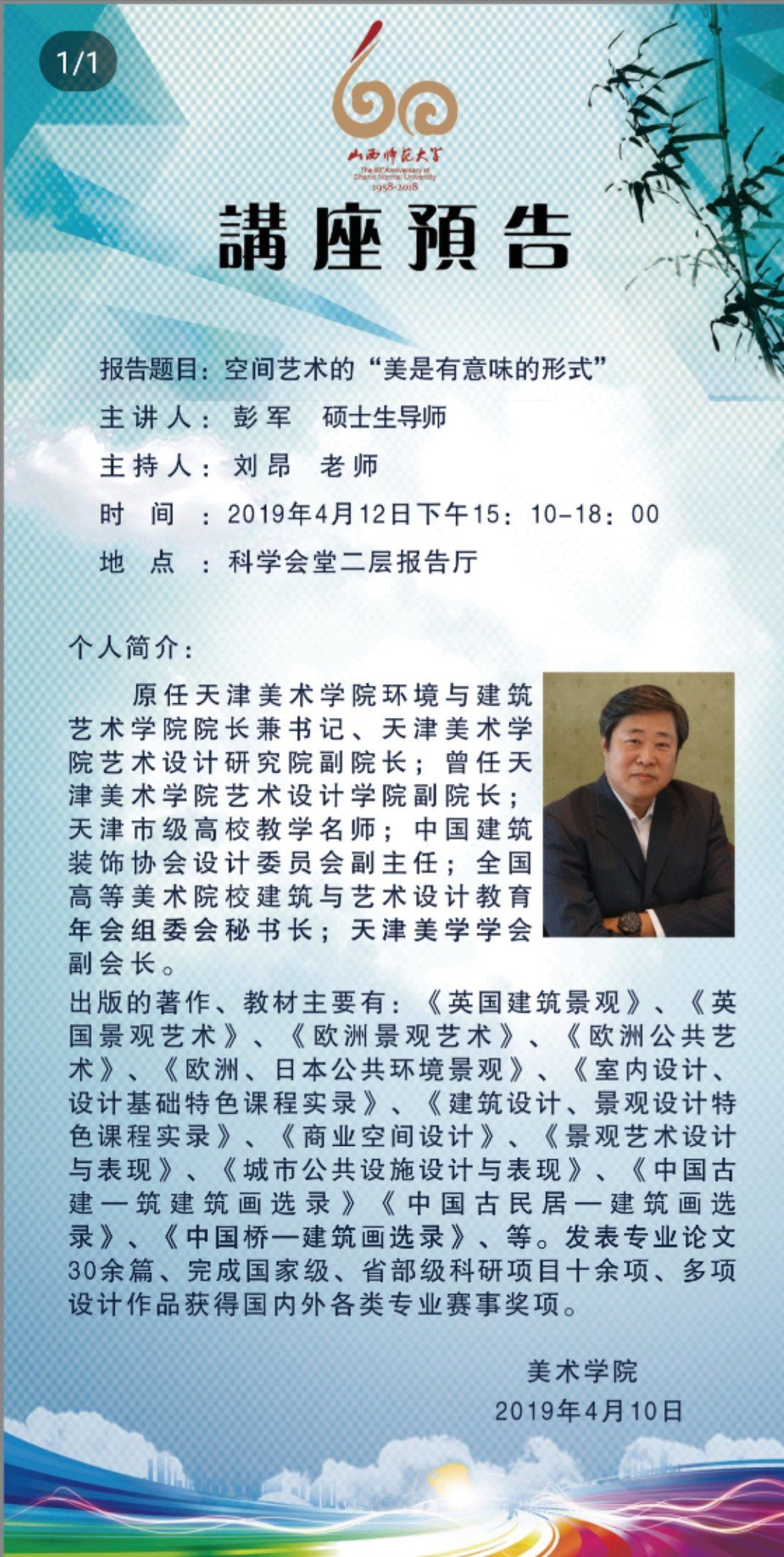 【预告】 天津美术学院彭军教授应邀来威尼斯官网做学术报告
