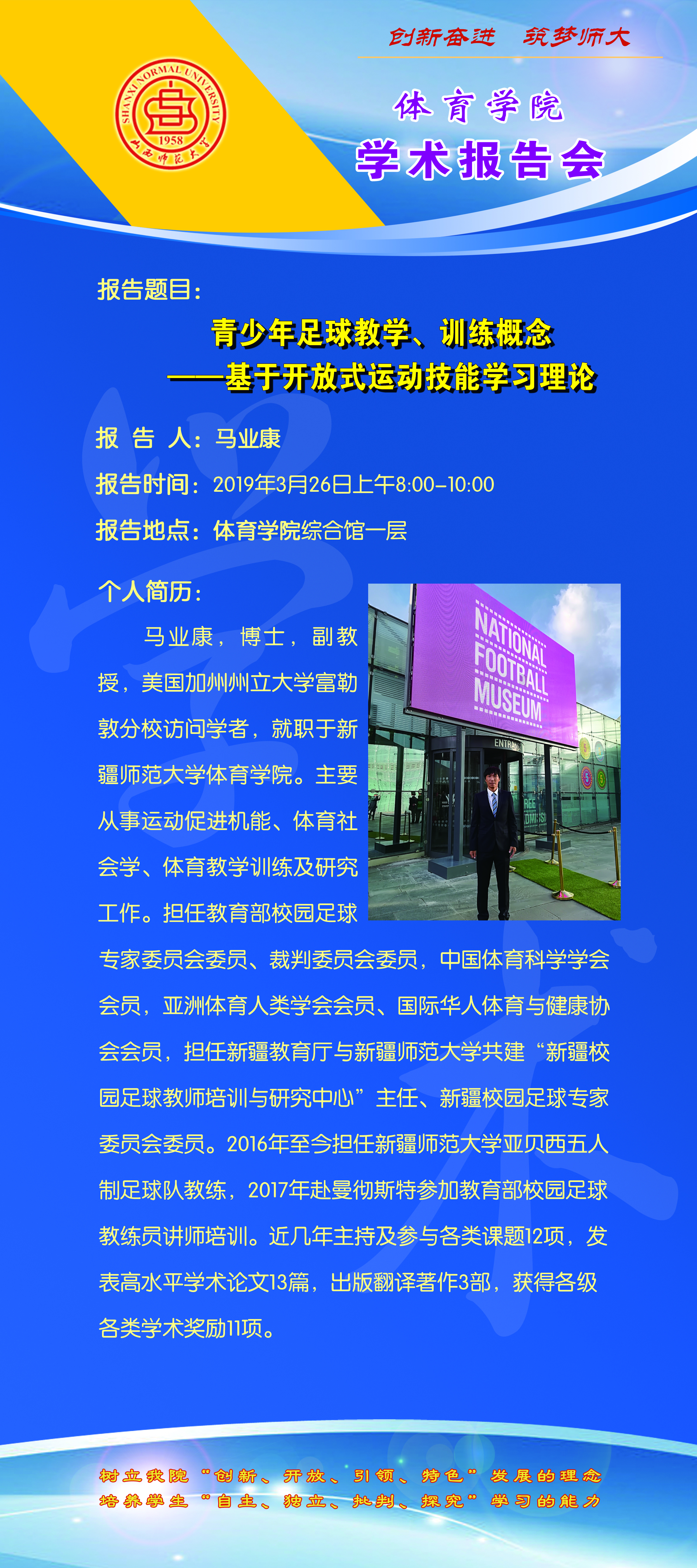 【预告】 新疆师范大学马业康博士应体育学院邀请来威尼斯官网作学术报告
