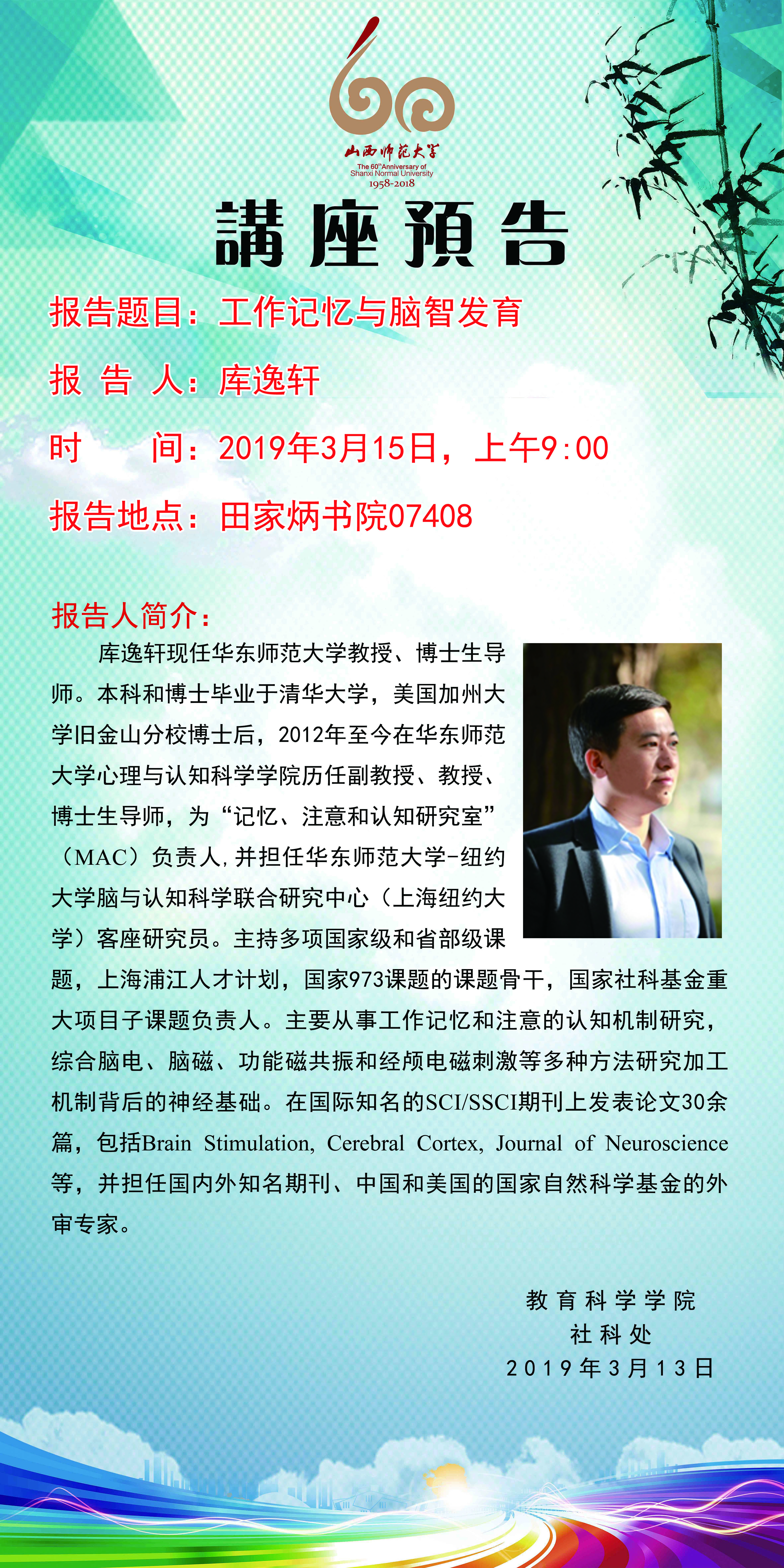 【预告】华东师范大学库逸轩教授应教育科学学院邀请来威尼斯官网作学术报告
