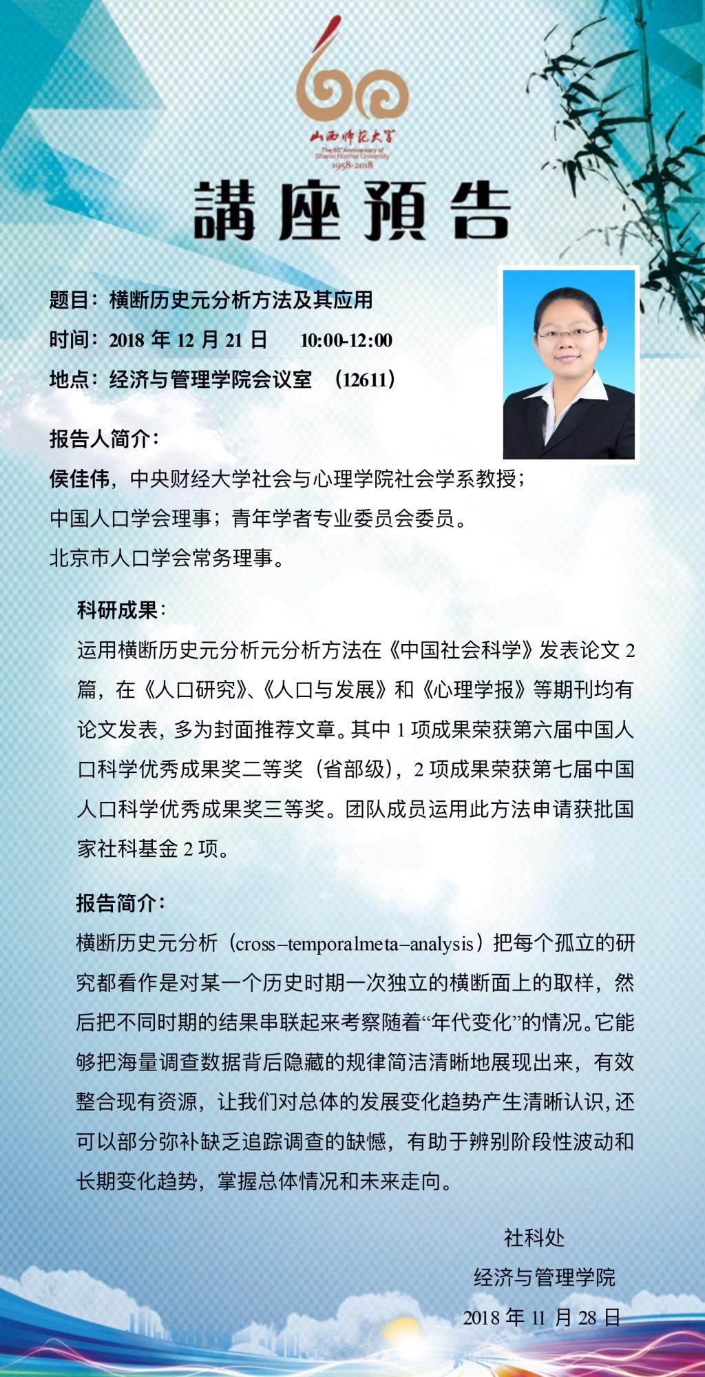 【预告】陕西师范大学哲学与政府管理学院常永华教授应经济与管理学院邀请来威尼斯官网作学术报告