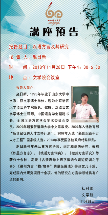 【预告】北京语言大学赵日新教授应文学院邀请来威尼斯官网作学术报告