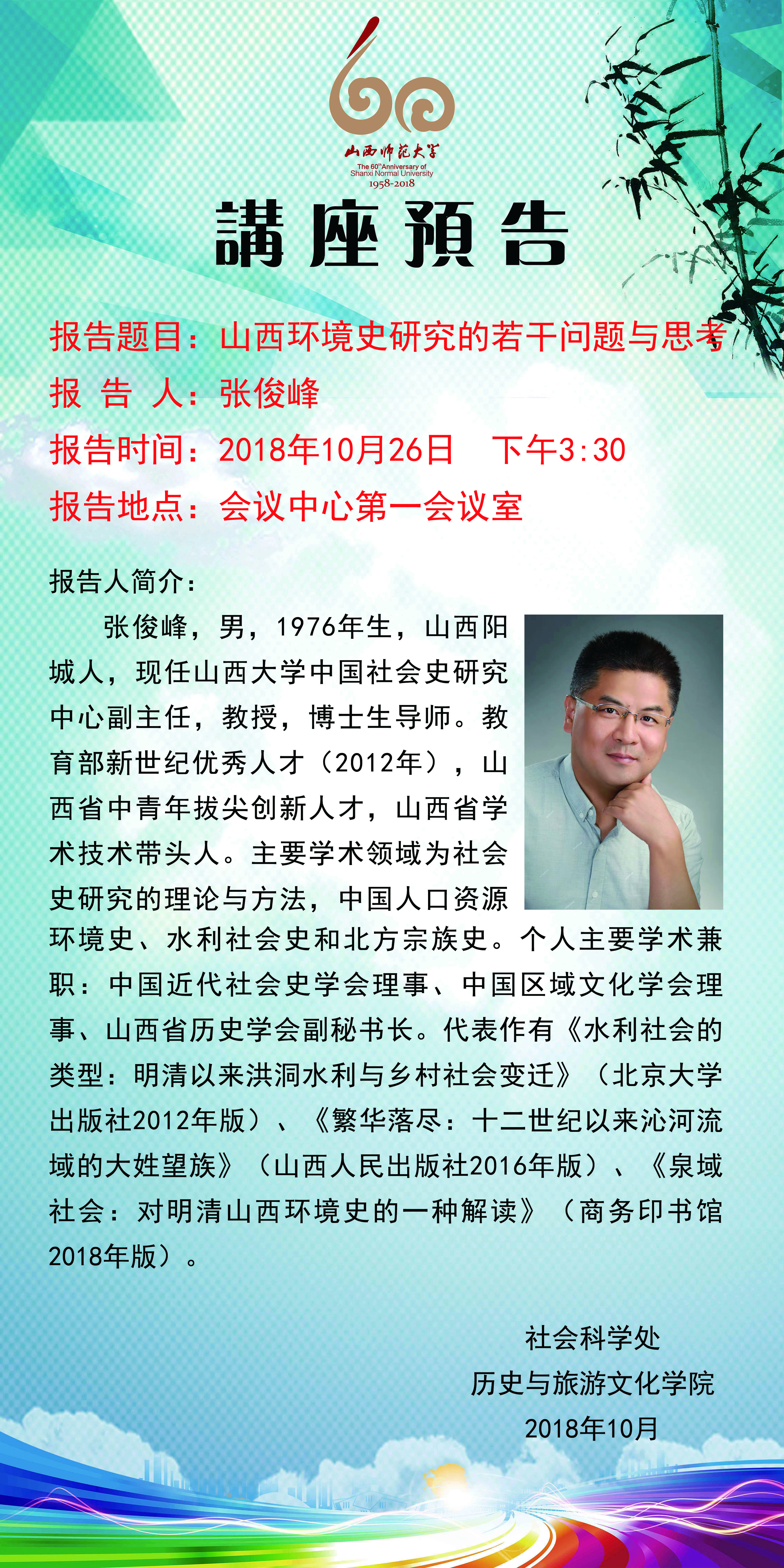 【预告】山西大学张俊峰教授应邀来威尼斯官网作学术报告
