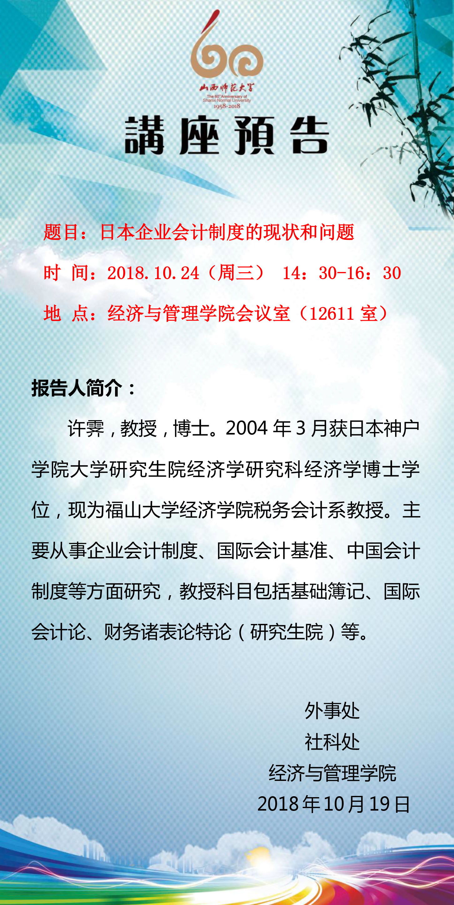 【预告】日本福山大学许霁教授应邀来威尼斯官网作学术报告