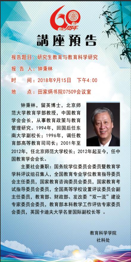 【预告】北京师范大学钟秉林教授应教育科学学院邀请来威尼斯官网作学术报告