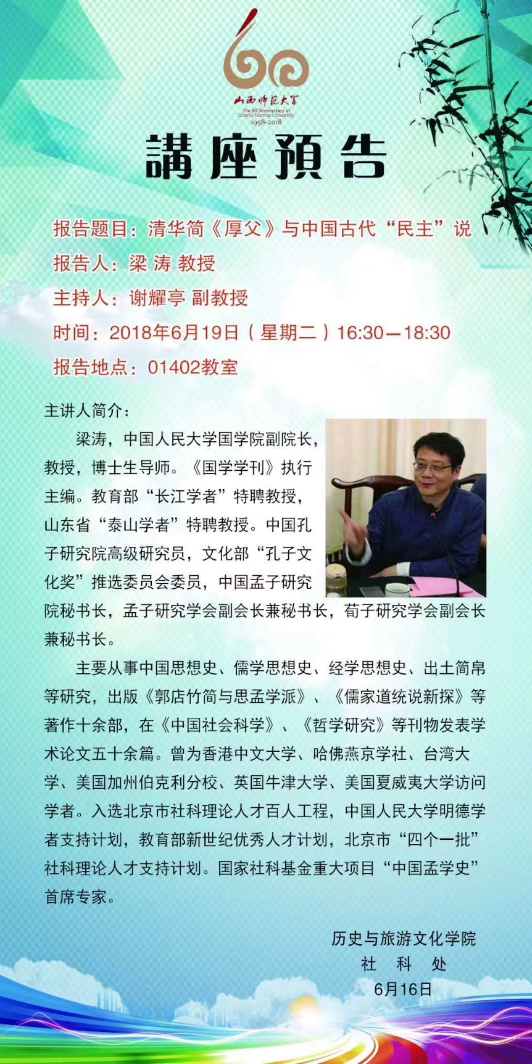 【预告】中国人民大学国学院副院长梁涛教授应历史与旅游文化学院邀请来威尼斯官网作学术报告