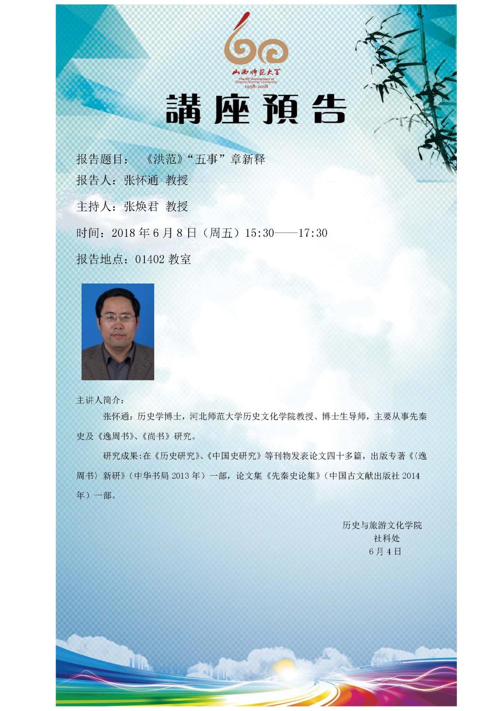 【预告】河北师范大学张怀通教授应历史与旅游文化学院邀请来威尼斯官网作学术报告