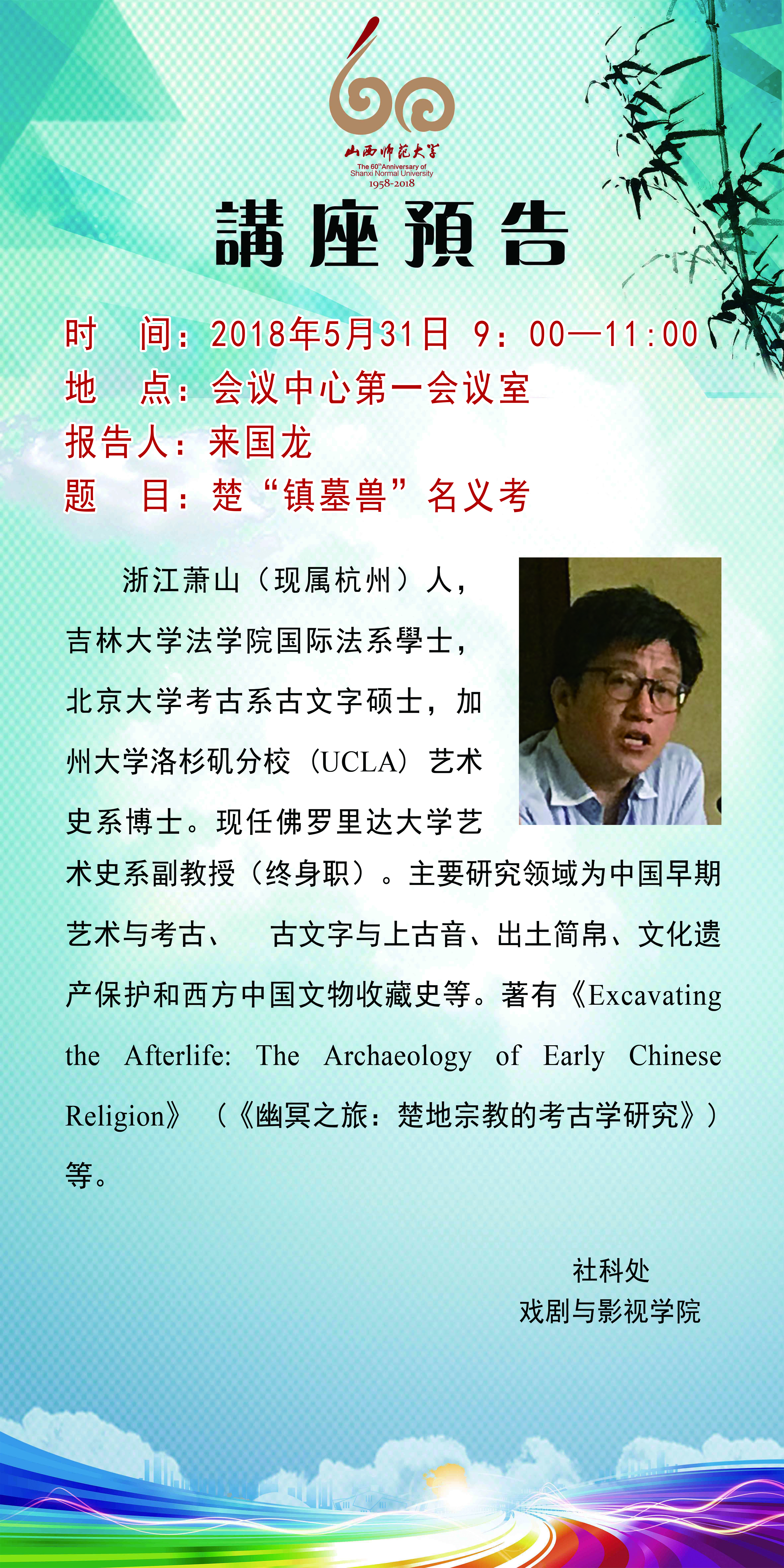 【预告】佛罗里达大学艺术史系来国龙副教授应戏剧与影视学院邀请来威尼斯官网作学术报告