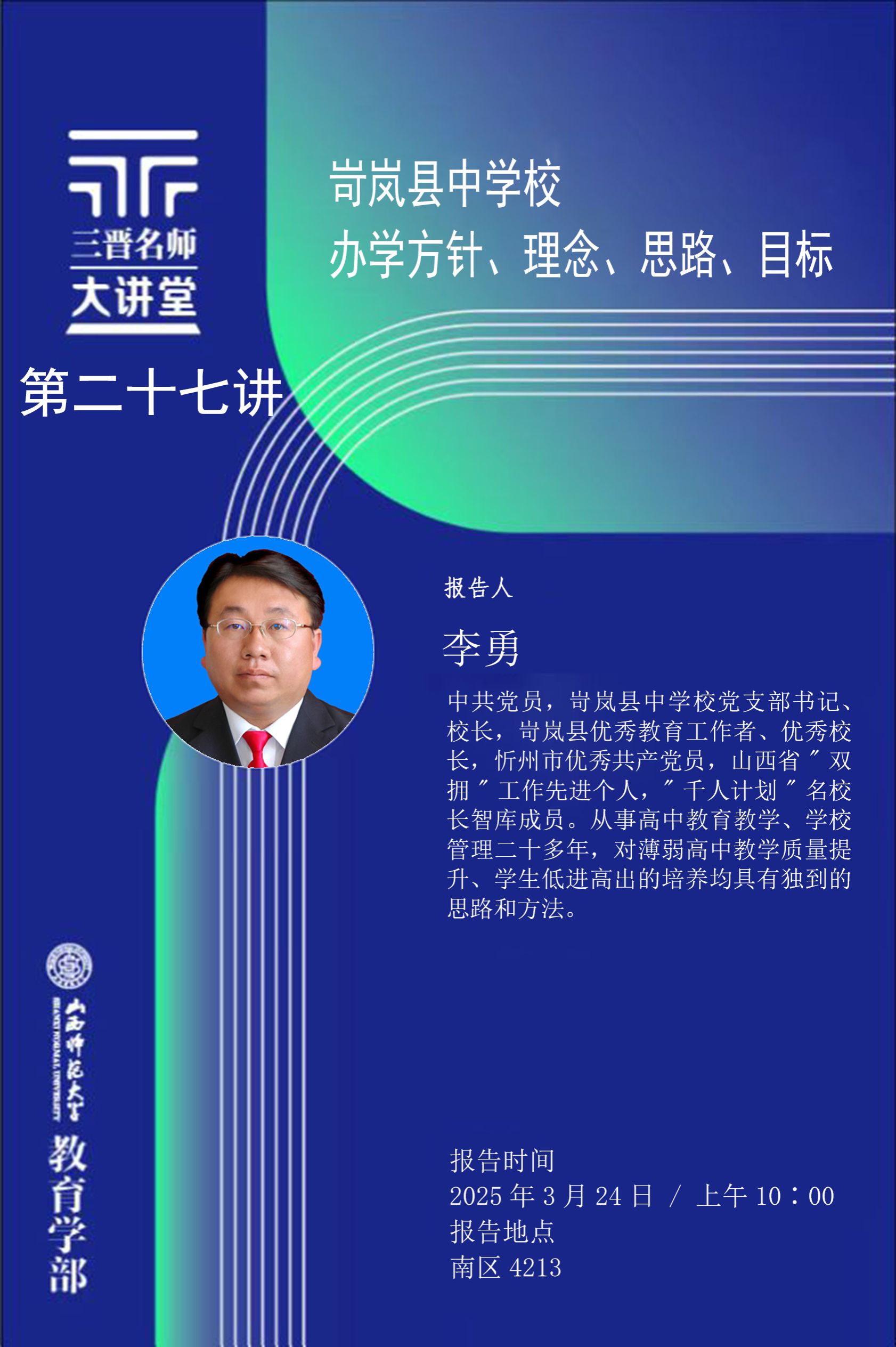 【预告】岢岚县中学校党支部书记、校长李勇应教育学部邀请作学术讲座