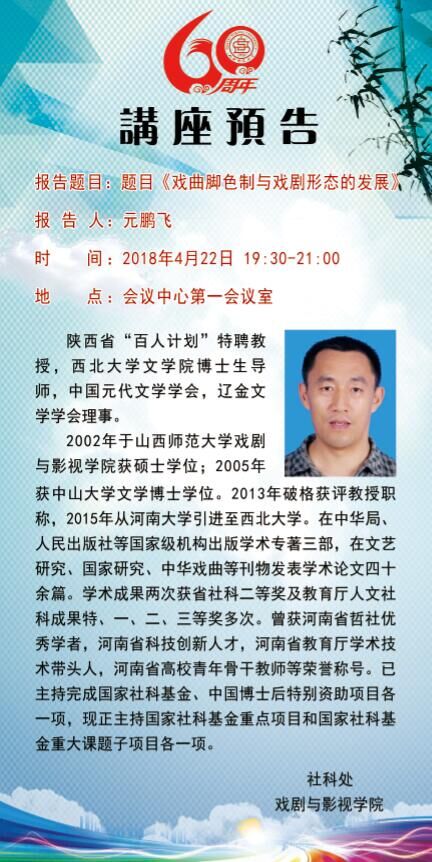 【预告】西北大学元鹏飞教授应戏剧与影视学院邀请来威尼斯官网作学术报告