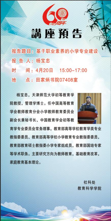 【预告】天津师范大学杨宝忠教授应教育科学学院邀请来威尼斯官网作学术报告