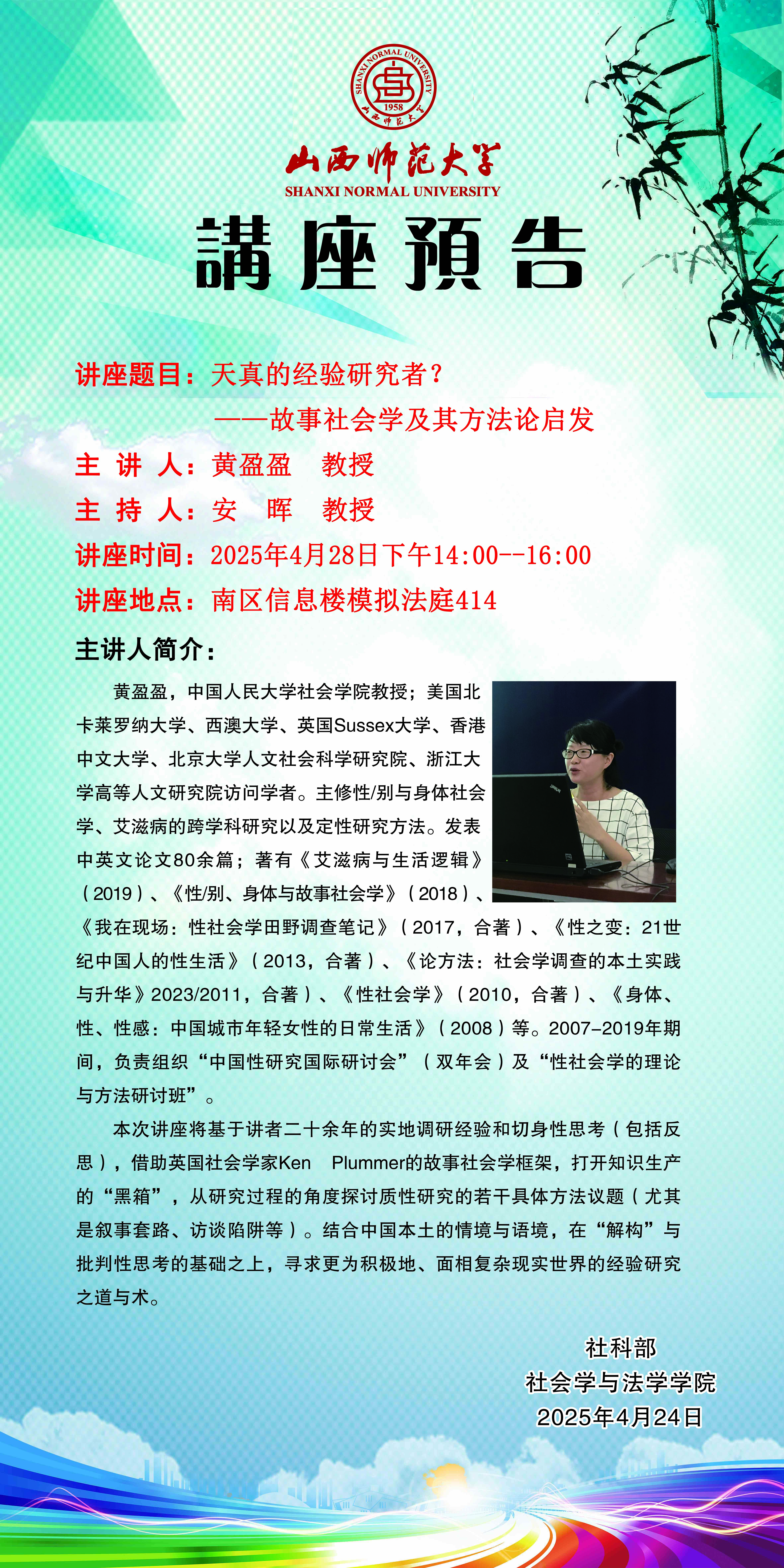 【预告】中国人民大学黄盈盈教授应威尼斯官网社会学与法学学院邀请作学术报告
