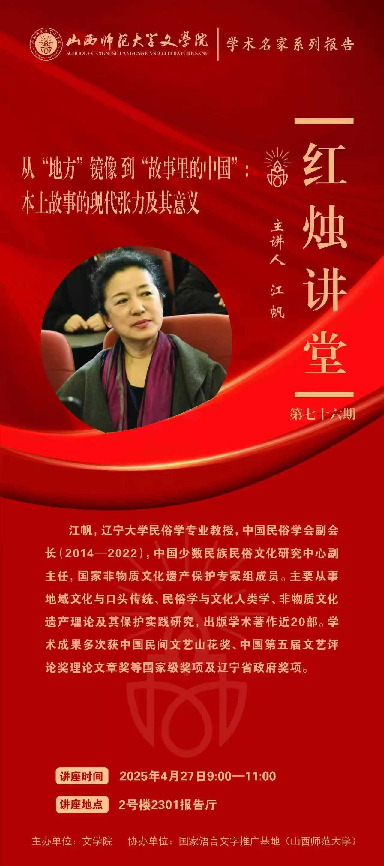 【预告】辽宁大学江帆教授应文学院邀请作学术报告