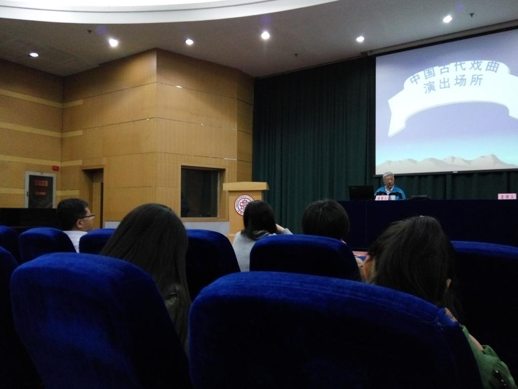 2016年4月7日晚7点,黄竹三教授应文学院之邀在科学会堂二层报告厅作了题为《中国古代戏曲演出场所》的学术报告。报告由文学院副院长赵变亲老师主持,文学院部分教师、研究生和本科生听取了报告。