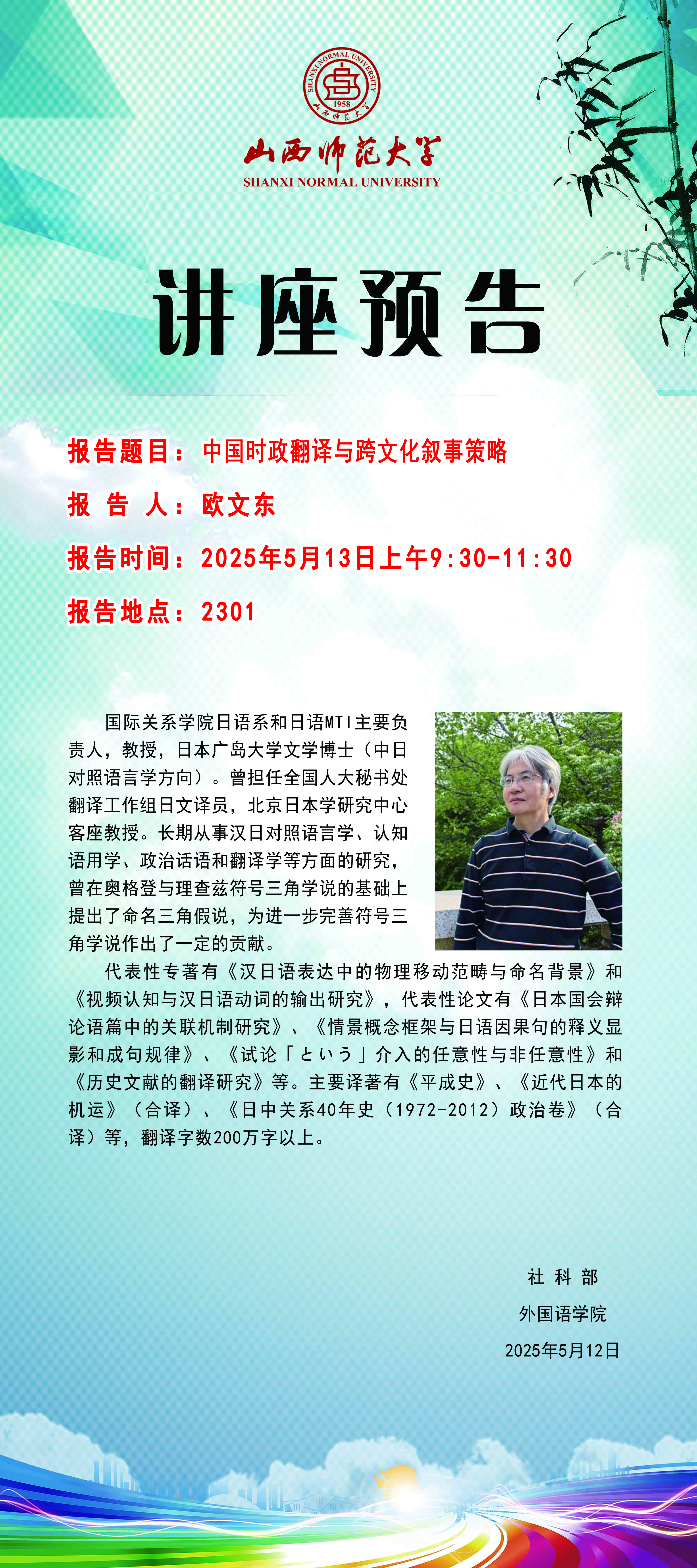 【预告】国际关系学院欧文东教授应外国语学院邀请作学术报告