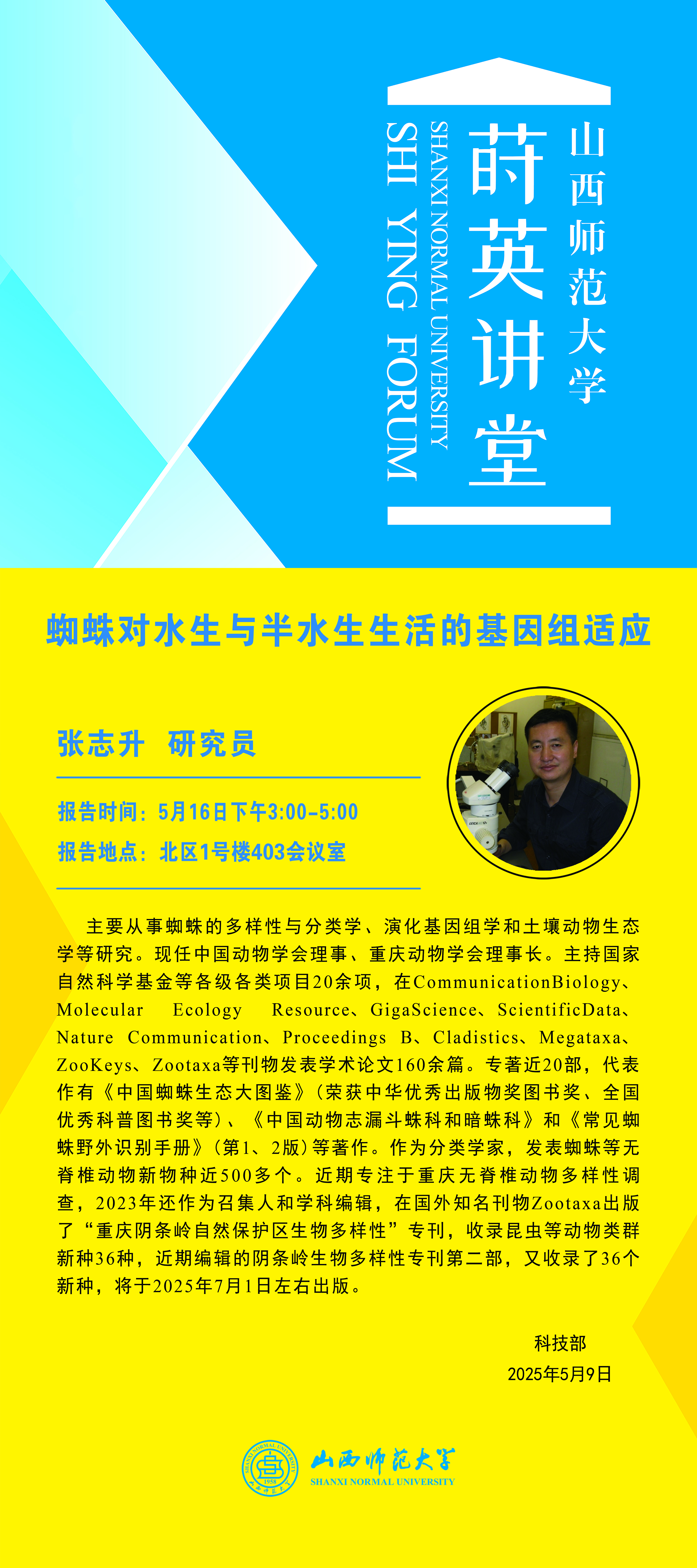 【预告】西南大学张志升研究员应威尼斯官网邀请作学术报告