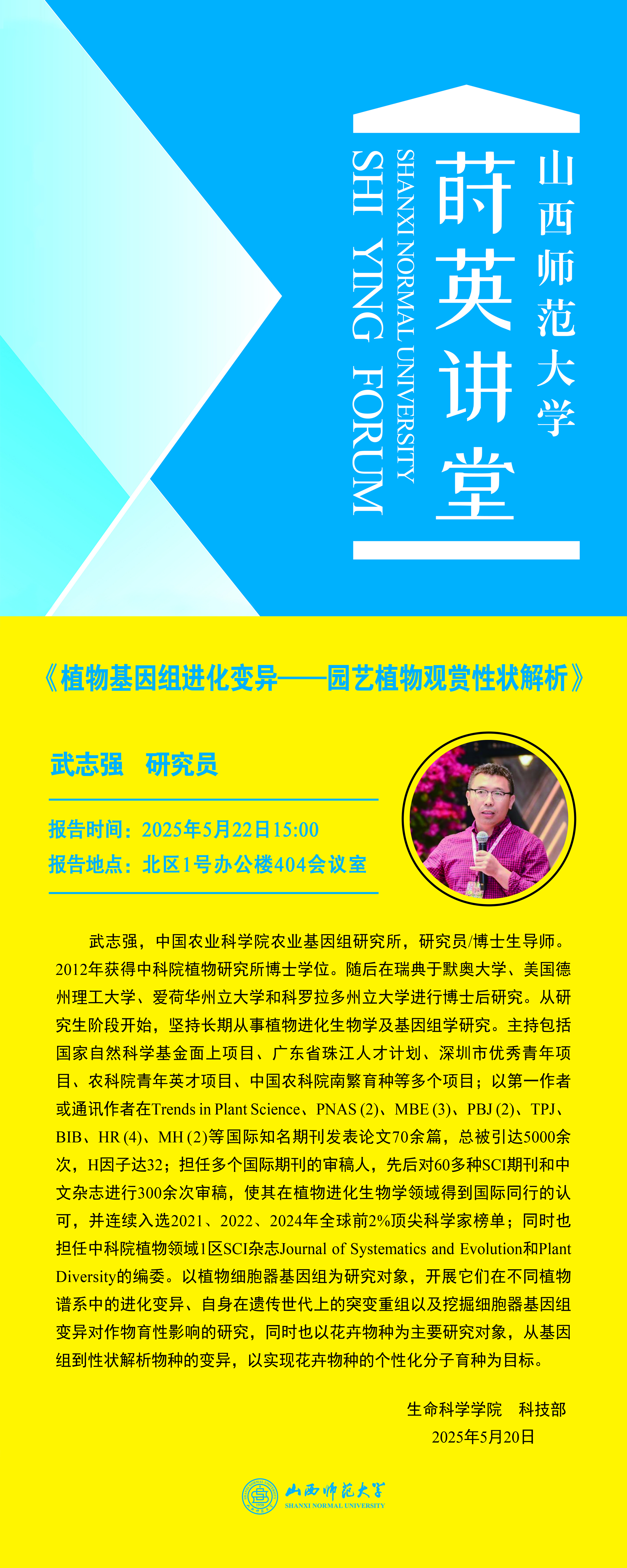 【预告】中国农业科学院农业基因组研究所武志强研究员应威尼斯官网邀请作学术报告