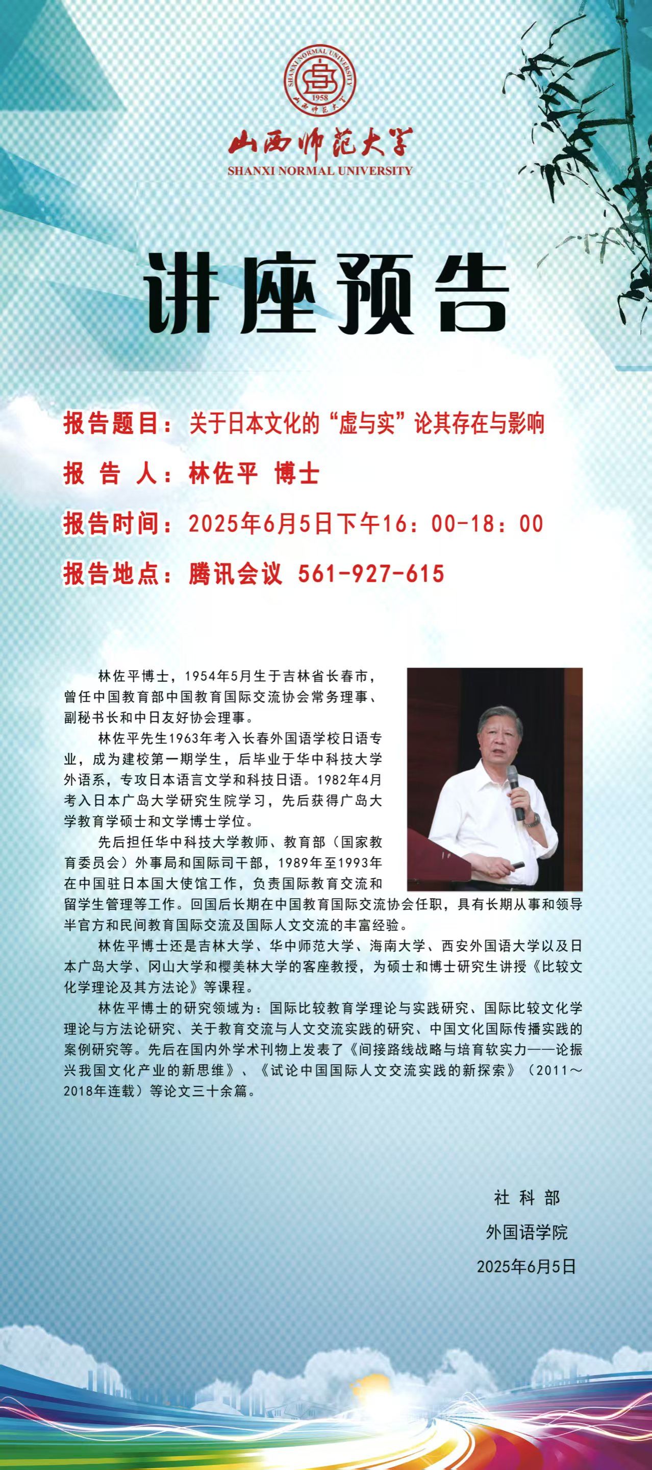 【预告】原中国教育部中国教育国际交流协会常务理事林佐平受外国语学院邀请做学术报告