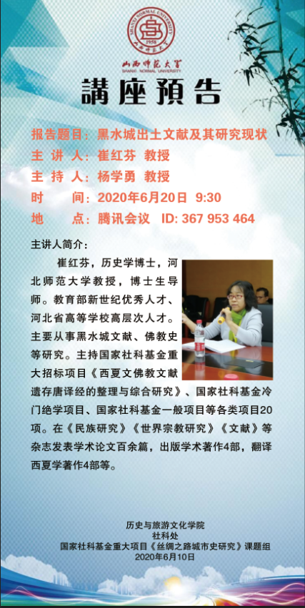 【预告】 河北师范大学崔红芬教授应历史与旅游文化学院邀请举办视频直播讲座