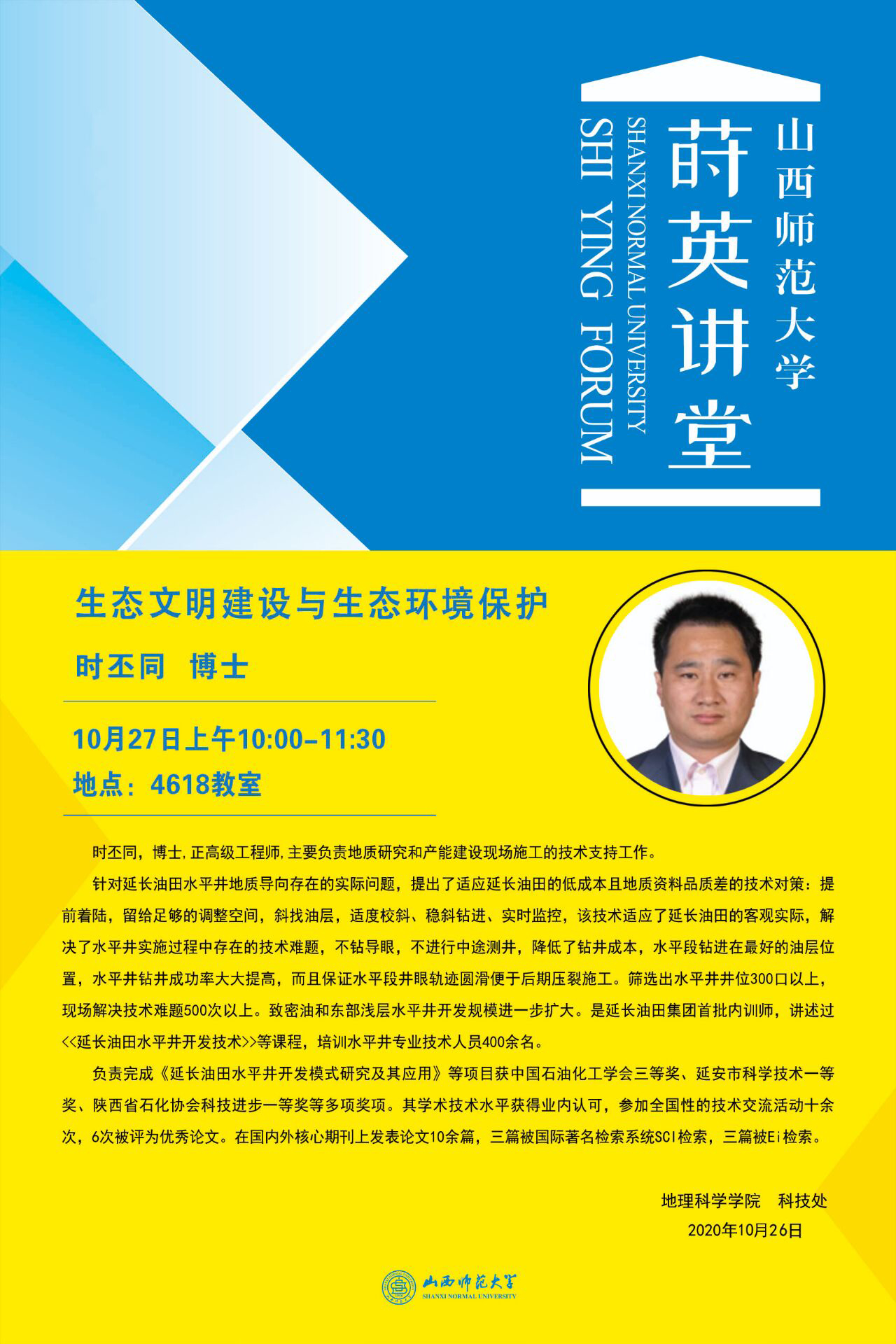 【预告】陕西延长石油(集团)有限责任公司研究院时丕同正高级工程师应邀来威尼斯官网作学术报告