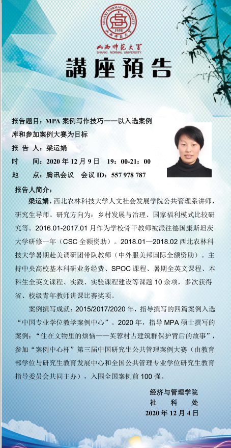 【预告】 西北农林科技大学梁运娟老师应经济与管理学院邀请作线上学术报告