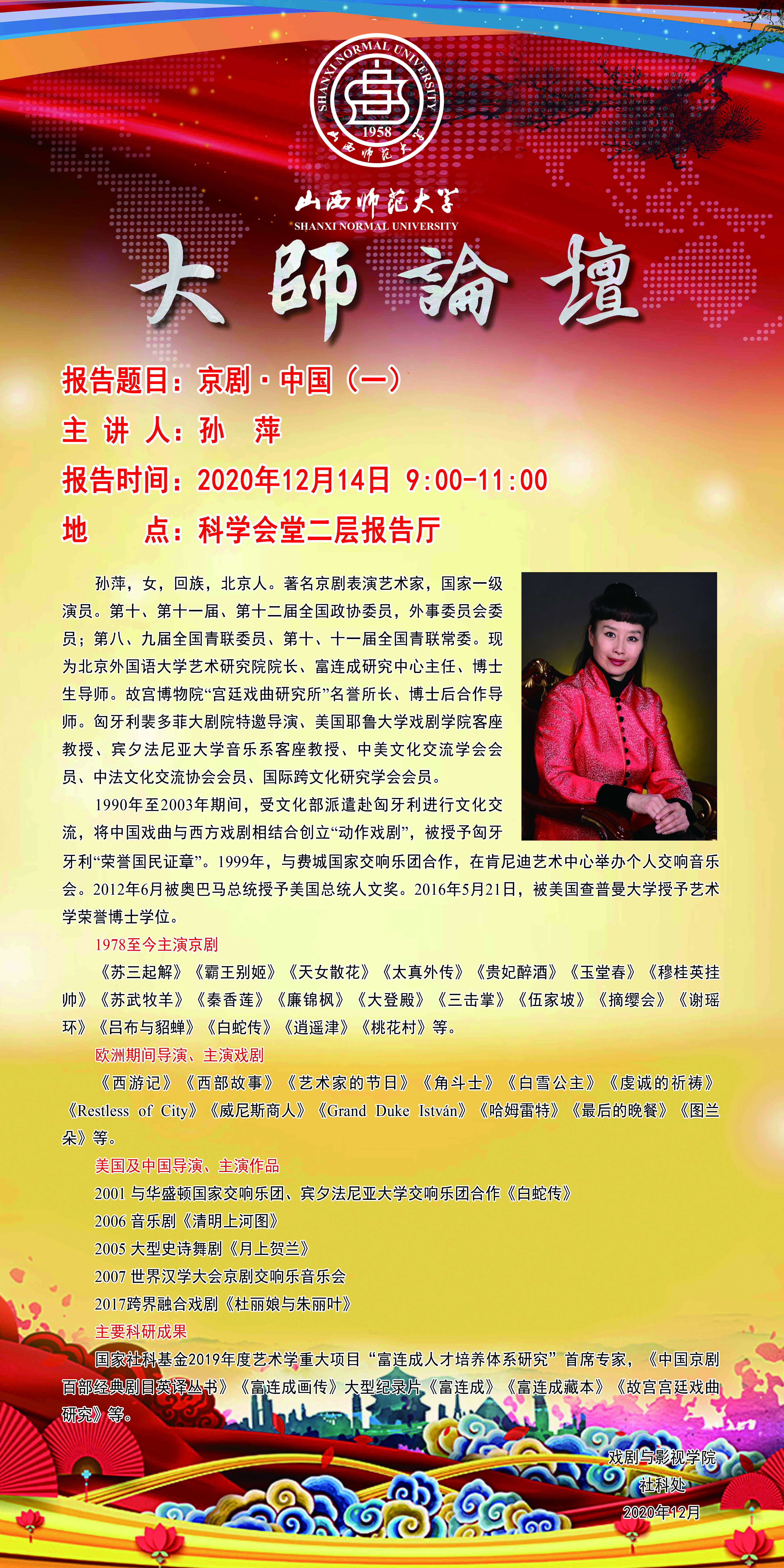 【预告】著名京剧表演艺术家、中国人民大学/北京外国语大学特聘教授叶金森先生应戏剧与影视学院邀请来威尼斯官网作学术报告