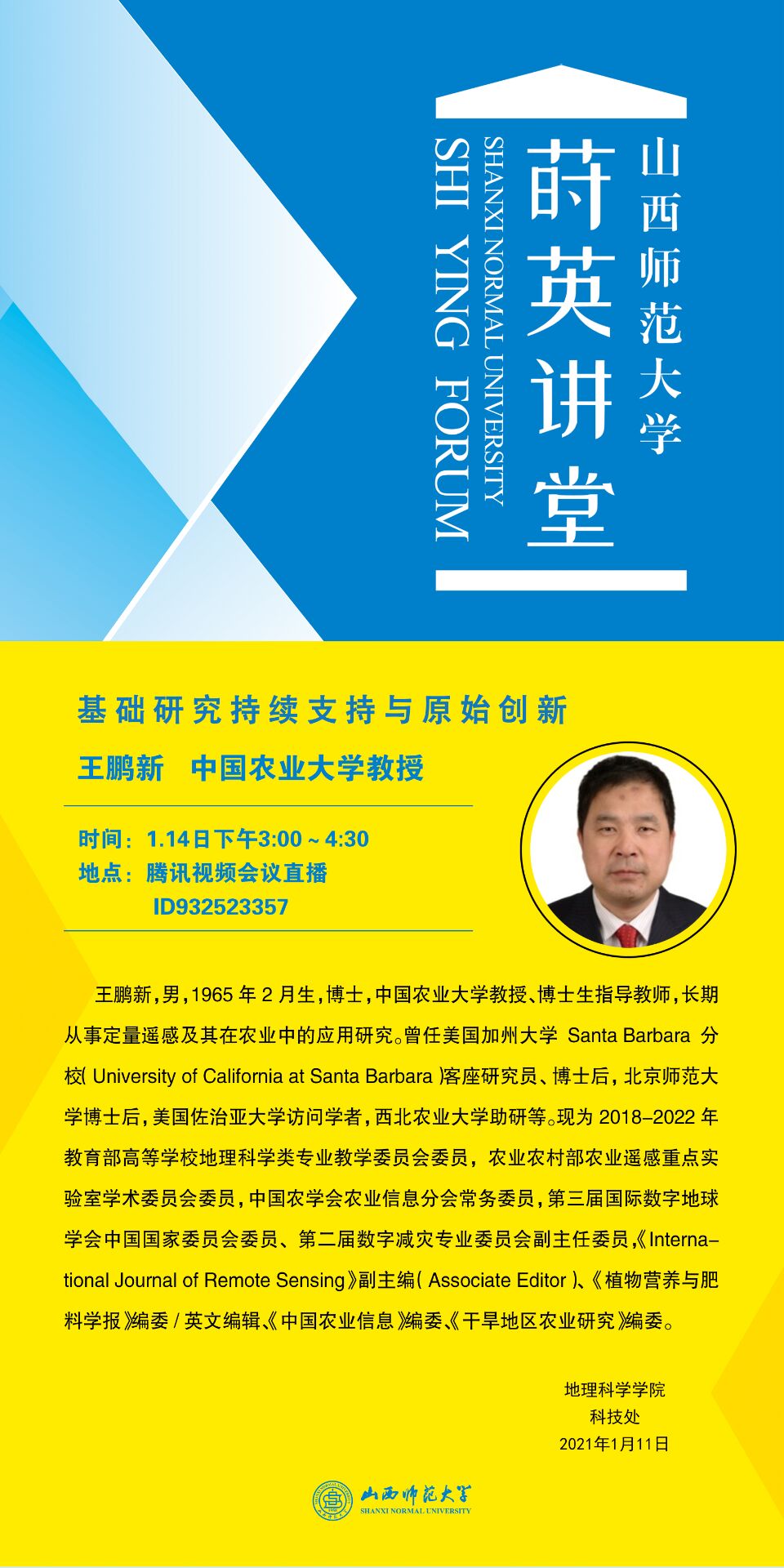 【预告】中国农业大学王鹏新教授应威尼斯官网邀请作学术报告
