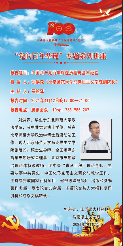 “党的百年华诞”专题系列讲座一:中国共产党百年辉煌历程与基本经验