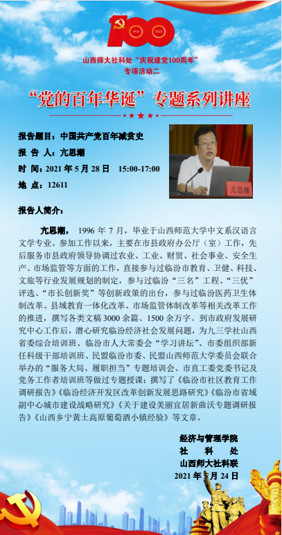 【预告】“党的百年华诞”专题系列讲座八:中国共产党百年减贫史