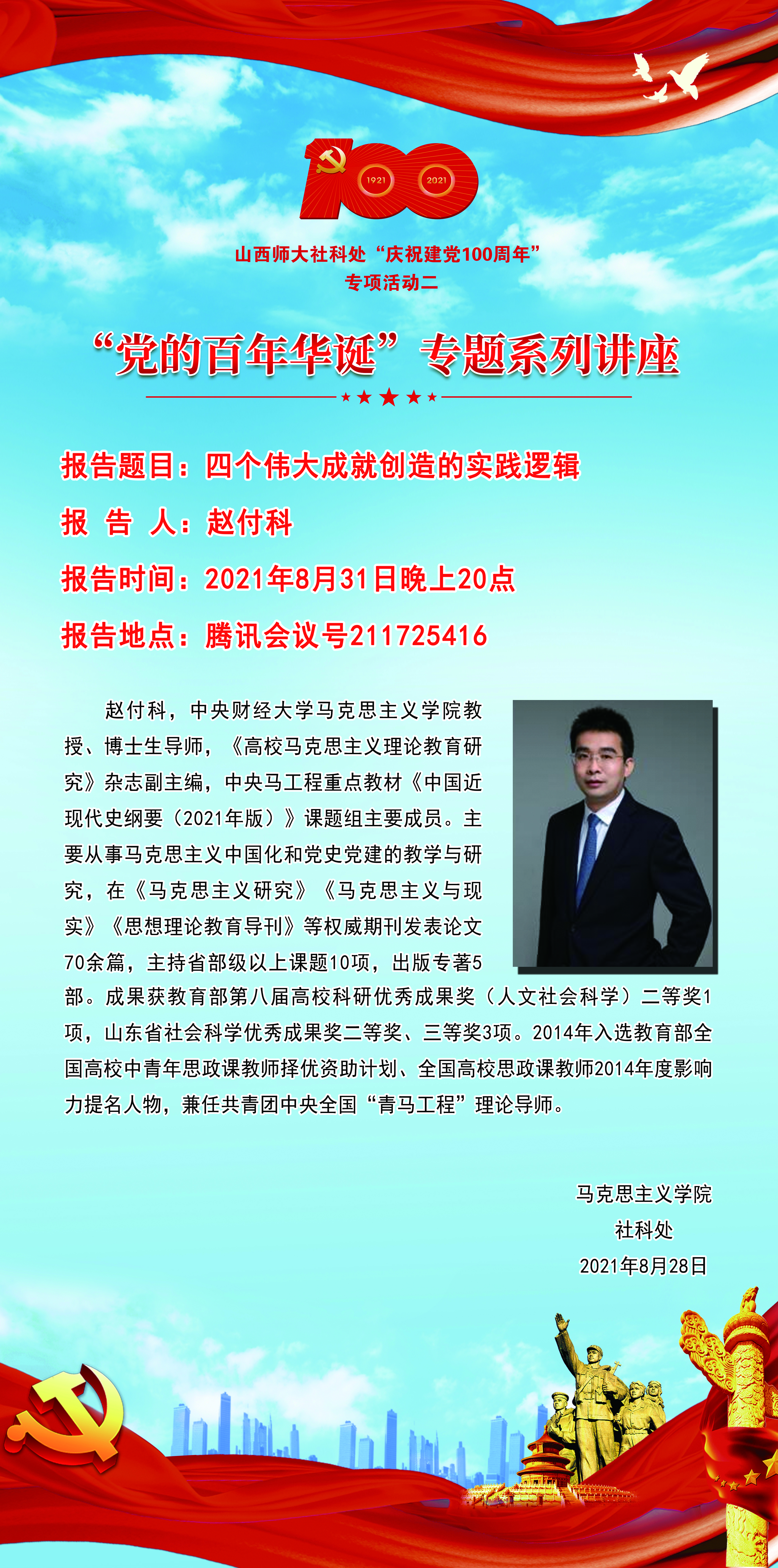 【预告】 “党的百年华诞”专题系列讲座十六:四个伟大成就创造的实践逻辑