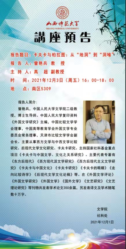 【预告】中国人民大学曾艳兵教授应文学院邀请来威尼斯官网作学术报告