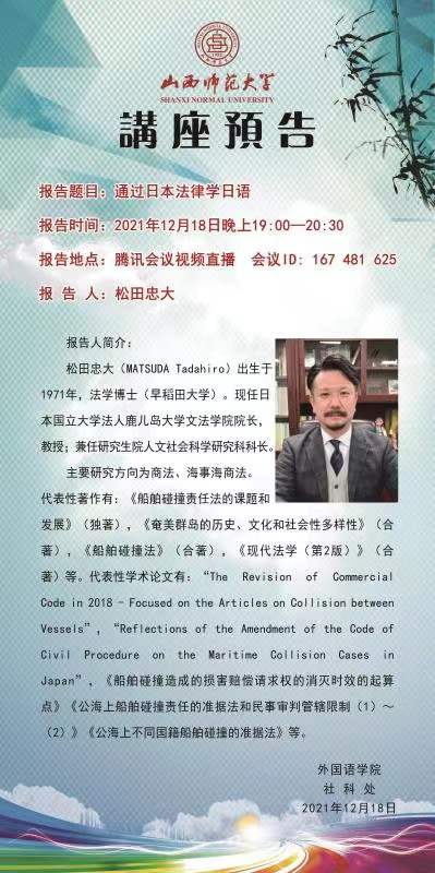 【预告】日本国立大学法人鹿儿岛大学文法学院松田忠大院长应外国语学院邀请作线上学术报告