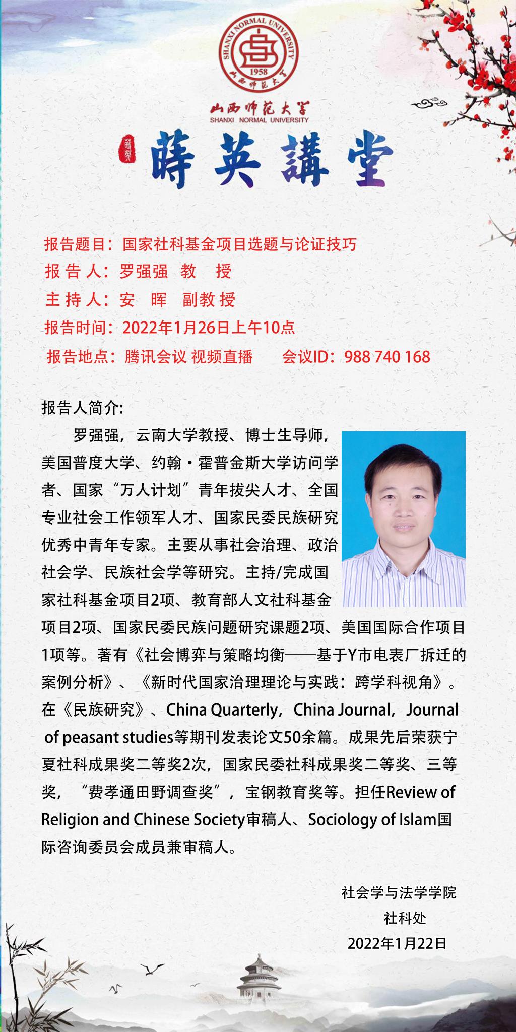 【预告】【莳英讲堂】云南大学罗强强教授应社会学与法学学院邀请作线上学术报告