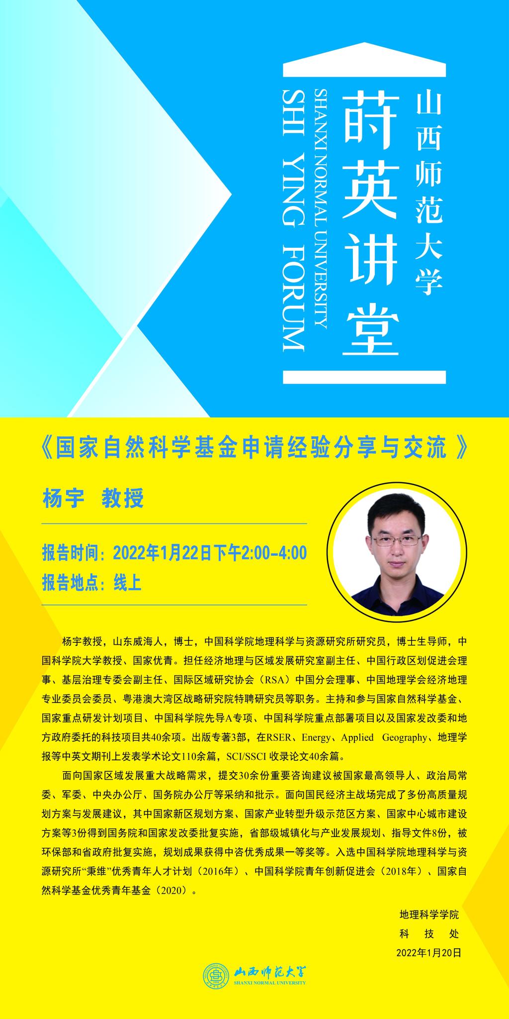 【预告】中国科学院大学杨宇教授应威尼斯官网邀请作学术报告