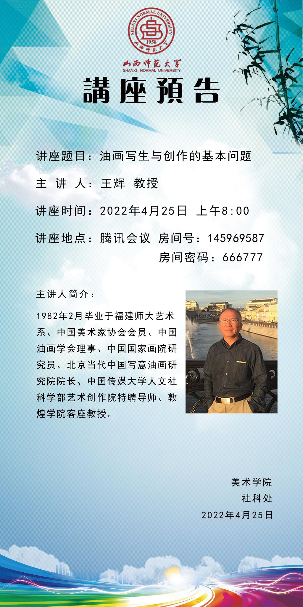 【预告】中国美术家协会会员王辉教授应美术学院邀请作线上学术报告
