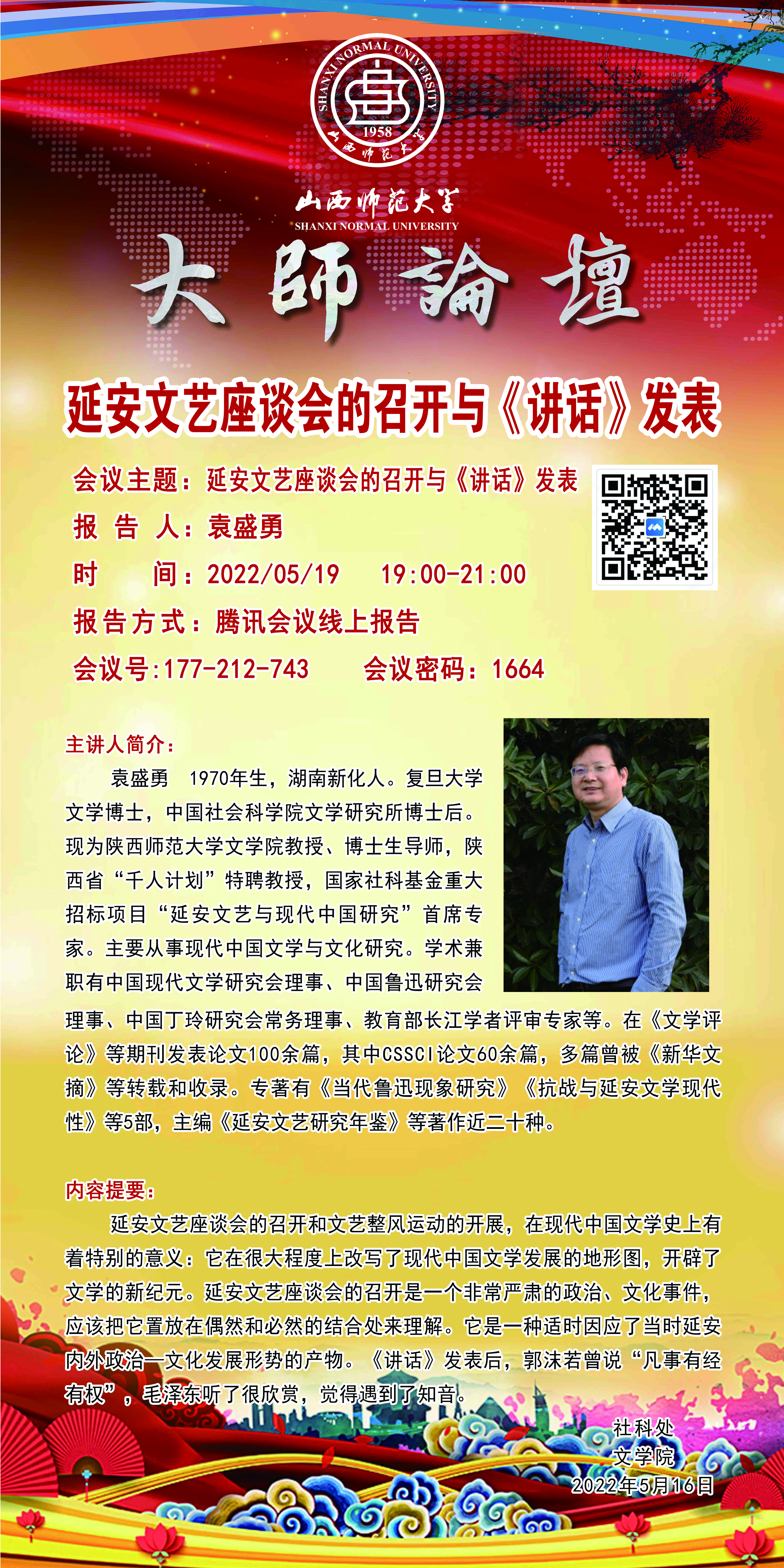 【预告】 山西传媒学院郭卫东教授应文学院邀请作线上学术报告