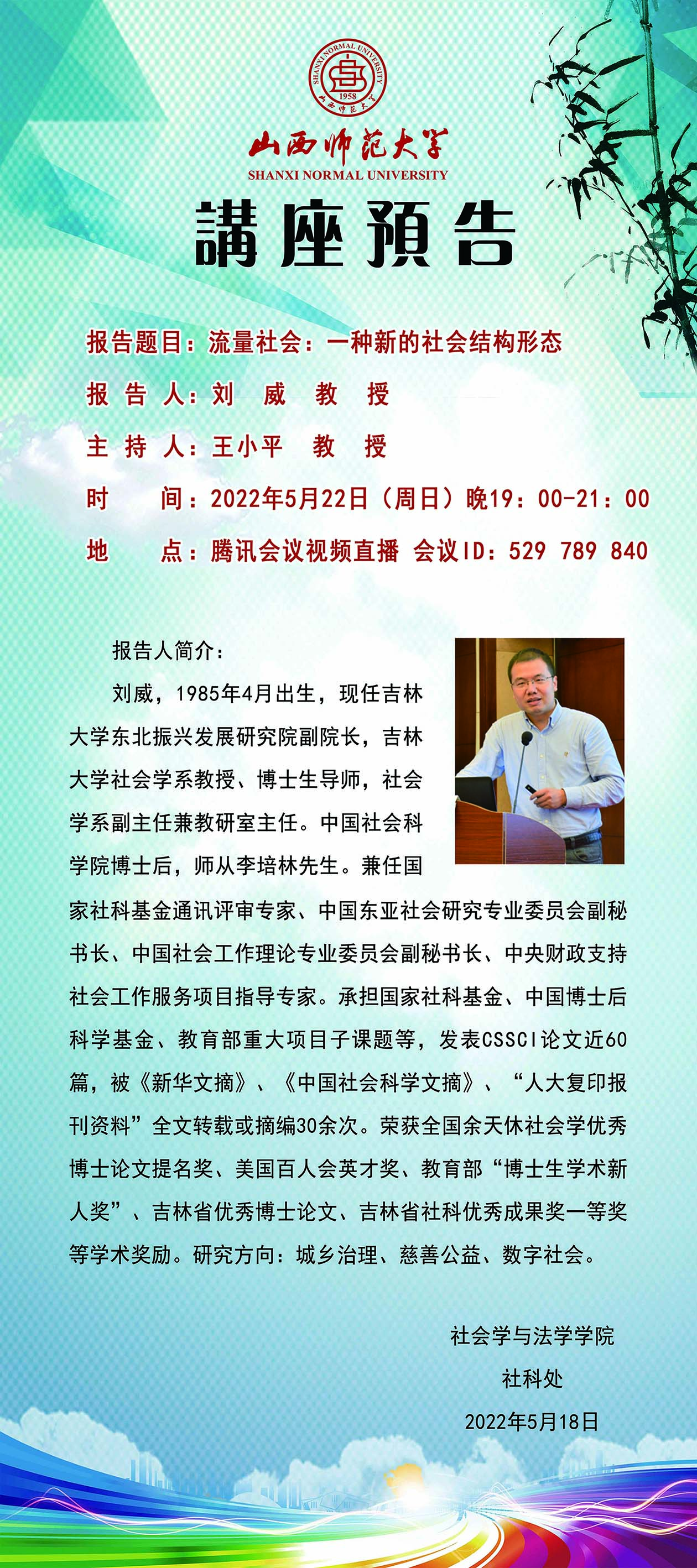 【预告】吉林大学东北振兴发展研究院副院长刘威教授应社会学与法学学院邀请作线上学术报告